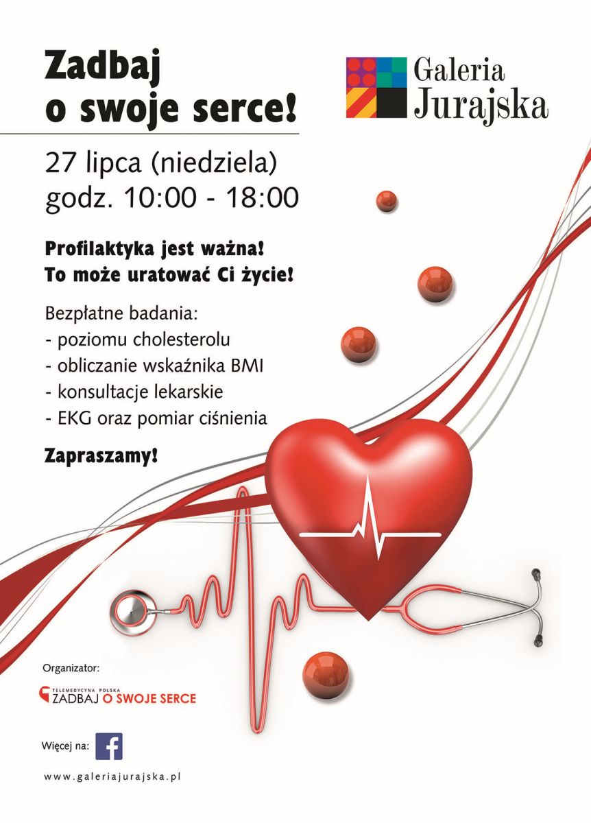 Bezpłatne badania serca w Galerii Jurajskiej będzie można wykonać 27 lipca w godz. 10.00-18.00. Będzie to piąta i tym samym ostatnia akcja w regionie w ramach kampanii „Zadbaj o swoje serce” organizowana przez Telemedycynę Polską S.A.